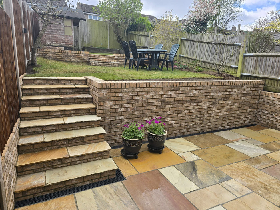 We build contemporary patios that strike the right balance between clean design and natural materials. Whether it’s porcelain, sandstone, or limestone, each patio is laid with care and attention to detail. From integrated seating and step work to custom features like fire pits or raised planters, we create outdoor spaces that are built for both everyday use and relaxed entertaining.